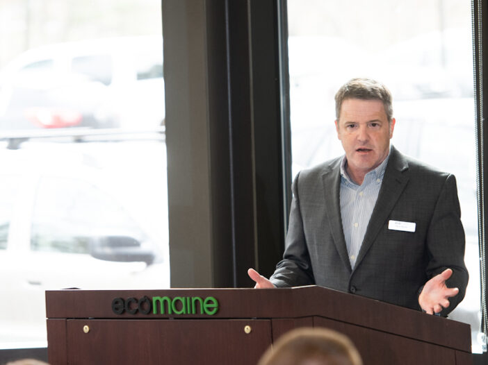 ecomaine CEO Kevin LaRoche addresses those gathered at the 2020 ecomaine eco-Excellence Awards at ecomaine. Photos by Brian Fitzgerald.