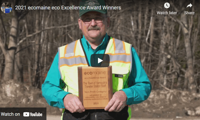 Normally, ecomaine’s eco-Excellence Award winners are announced at a luncheon event with dozens of people in attendance. In fact, the 2020 event was one of the very last events ecomaine held before the COVID-19 pandemic lockdown occurred. But with so much uncertainty in early 2021, we chose to honor this year’s class via a video tribute, unveiled at ecomaine’s 2021 Annual Meeting in Portland.
