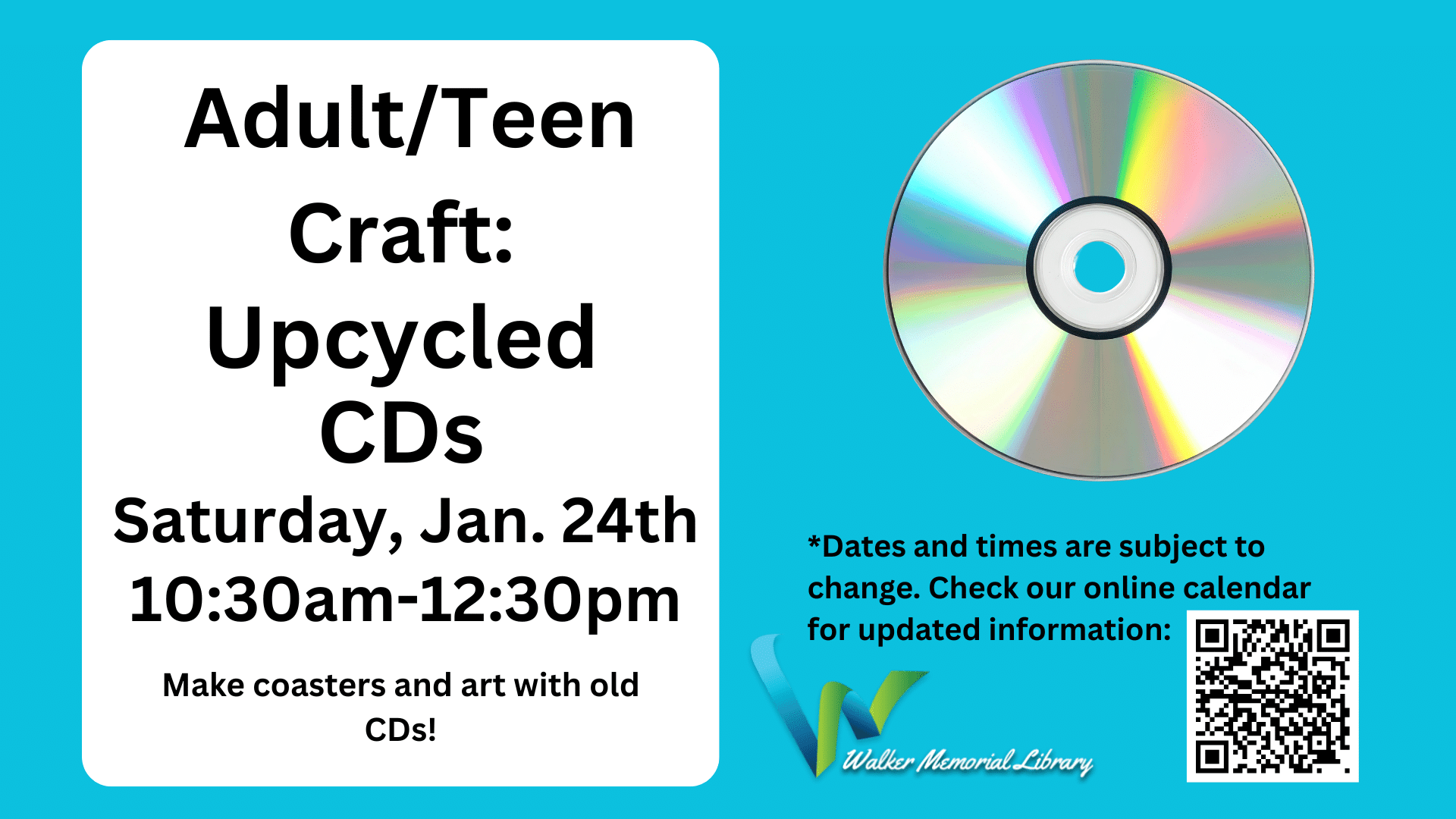 Make coasters and art out of old CDs with the City of Westbrook.